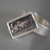 黒っぽい内包物が細かく入った石は
